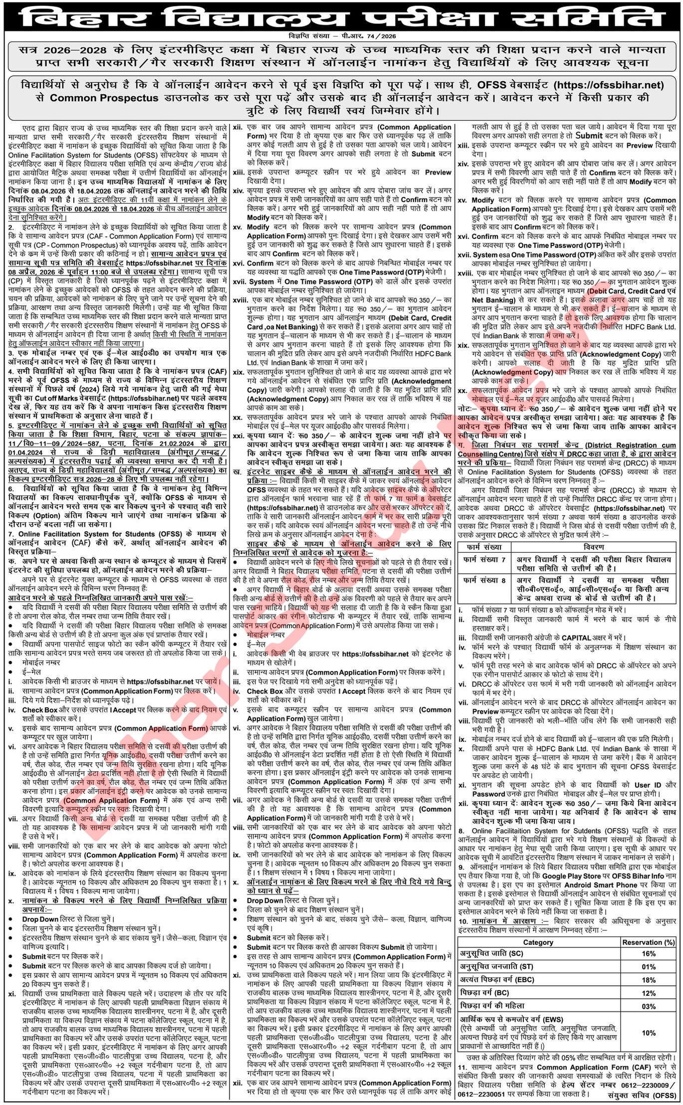 ✅ नोट: Bihar Board 11th Admission 2026 से जुड़ी किसी भी जानकारी के लिए केवल ofssbihar.net की आधिकारिक वेबसाइट देखें। Official Notification जारी होते ही इस Page पर सभी Links और Dates Update कर दी जाएंगी।