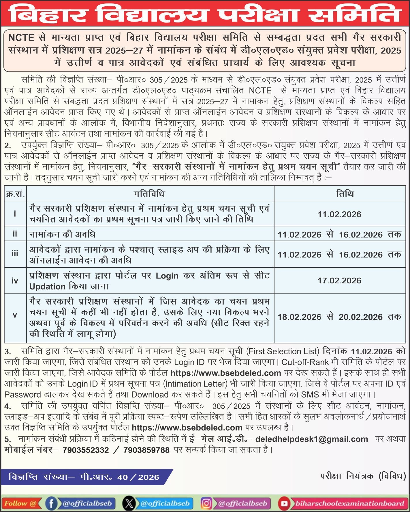 यह सूची विशेष रूप से गैर-सरकारी (Private) प्रशिक्षण संस्थानों के लिए जारी की गई है। जिन अभ्यर्थियों का नाम इस सूची में शामिल है, उन्हें निर्धारित तिथि के अंदर संबंधित कॉलेज में जाकर नामांकन करवाना अनिवार्य है।