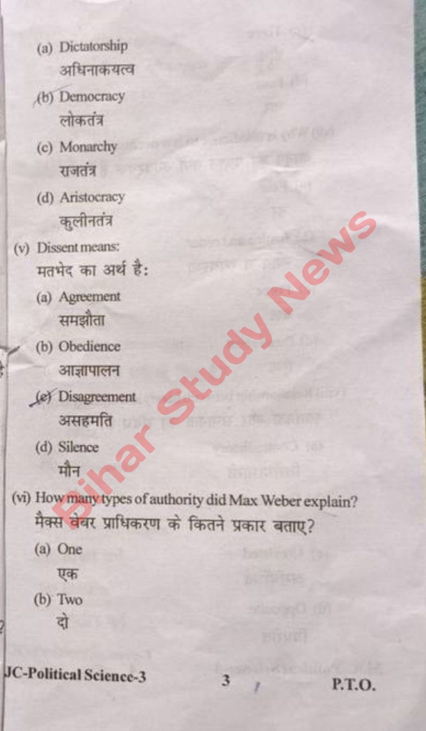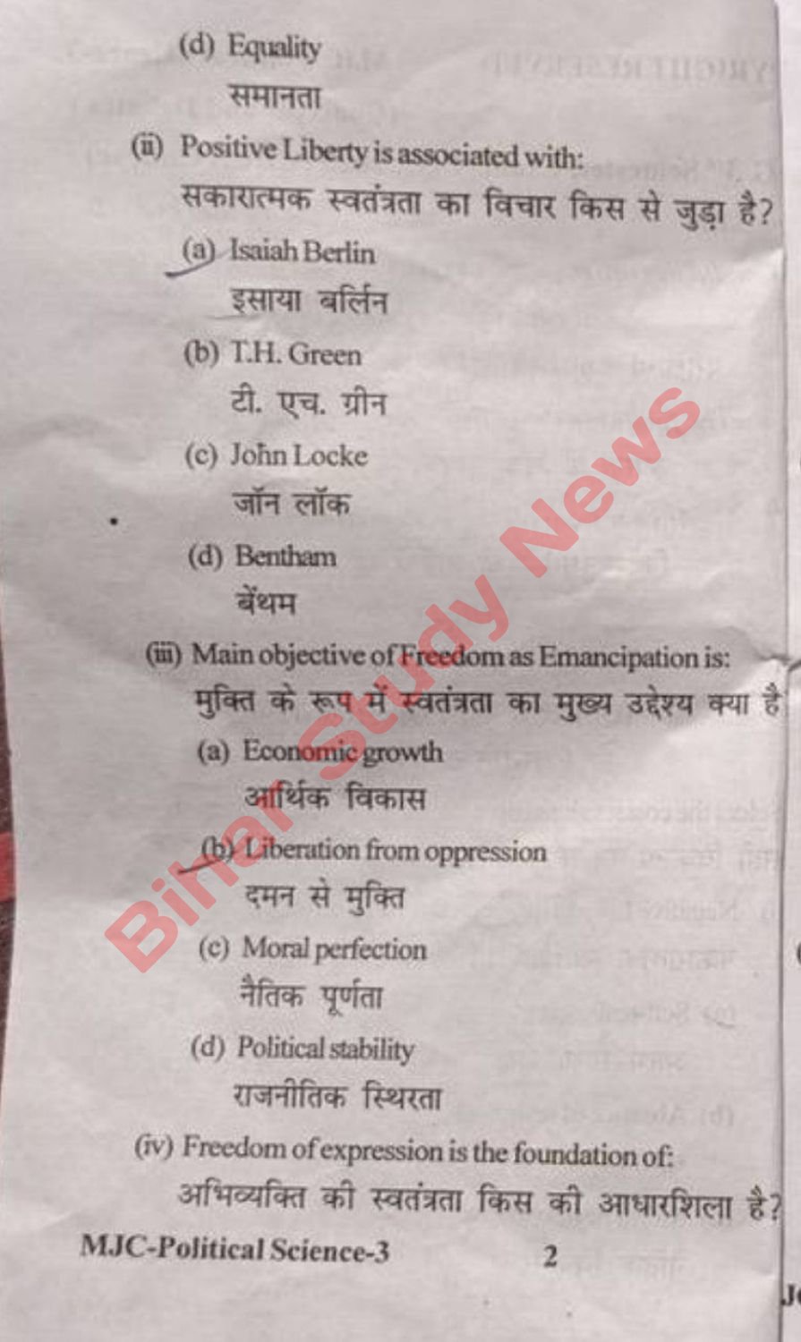 BNMU Madhepura BA 3rd Sem Political Science Major Course MJC-III 2025 Question Paper