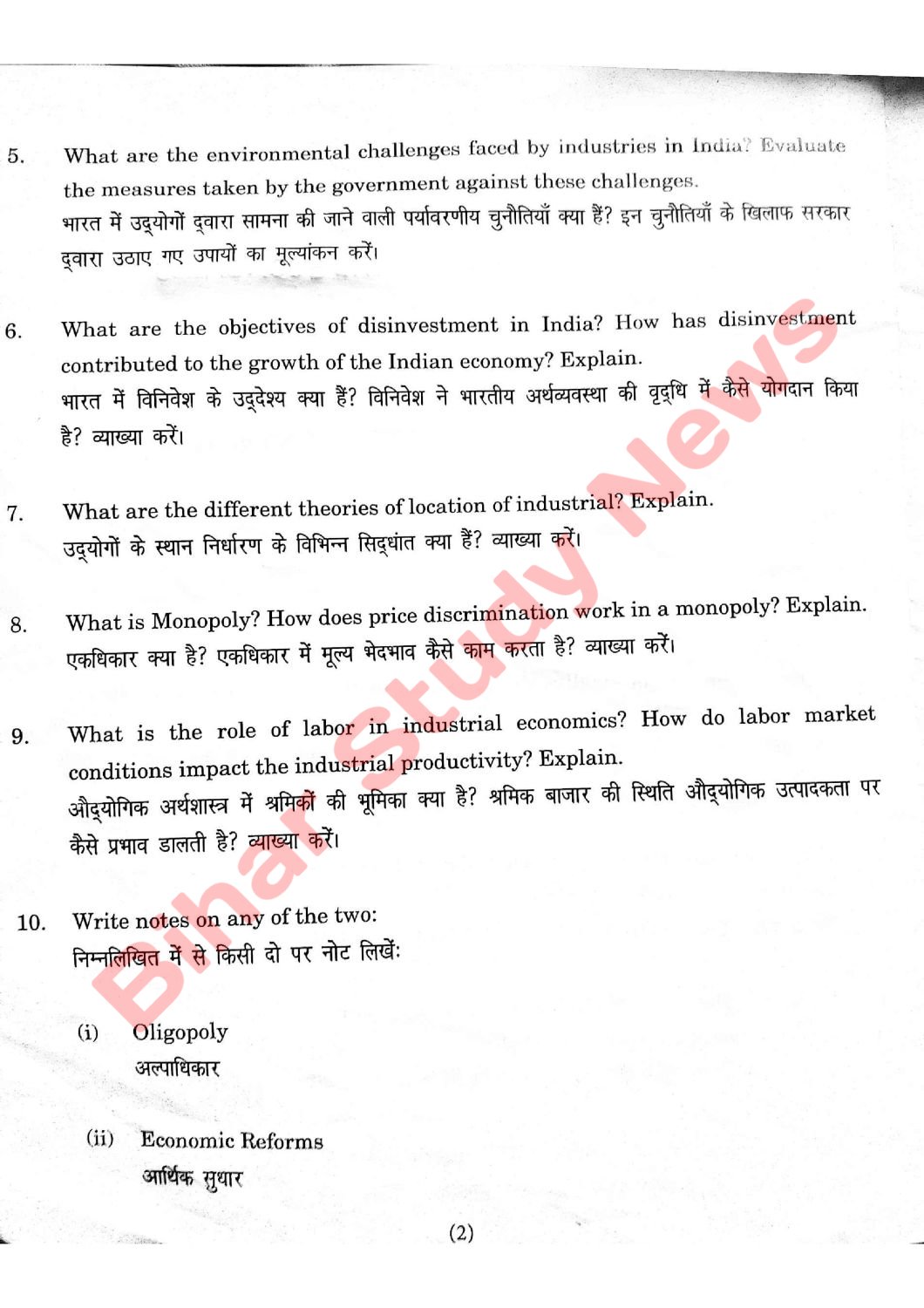 Purnea University BA Part 3 Economics Hons Paper VII (D) 2025 Question Paper