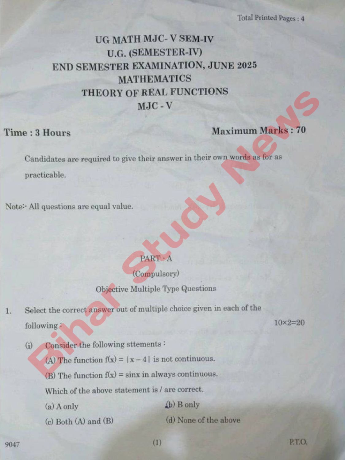 Purnea University BSc 4th Sem Mathematics (Sc) Major Course MJC-V 2025 Question Paper
