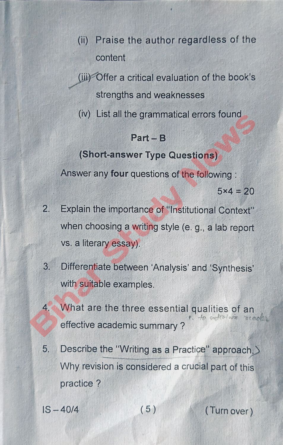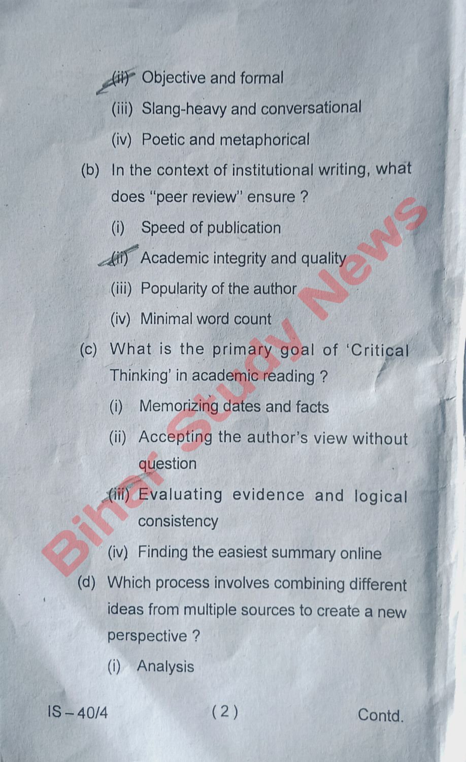 Purnea University UG 1st Sem English MDC-I 2025 Question Paper