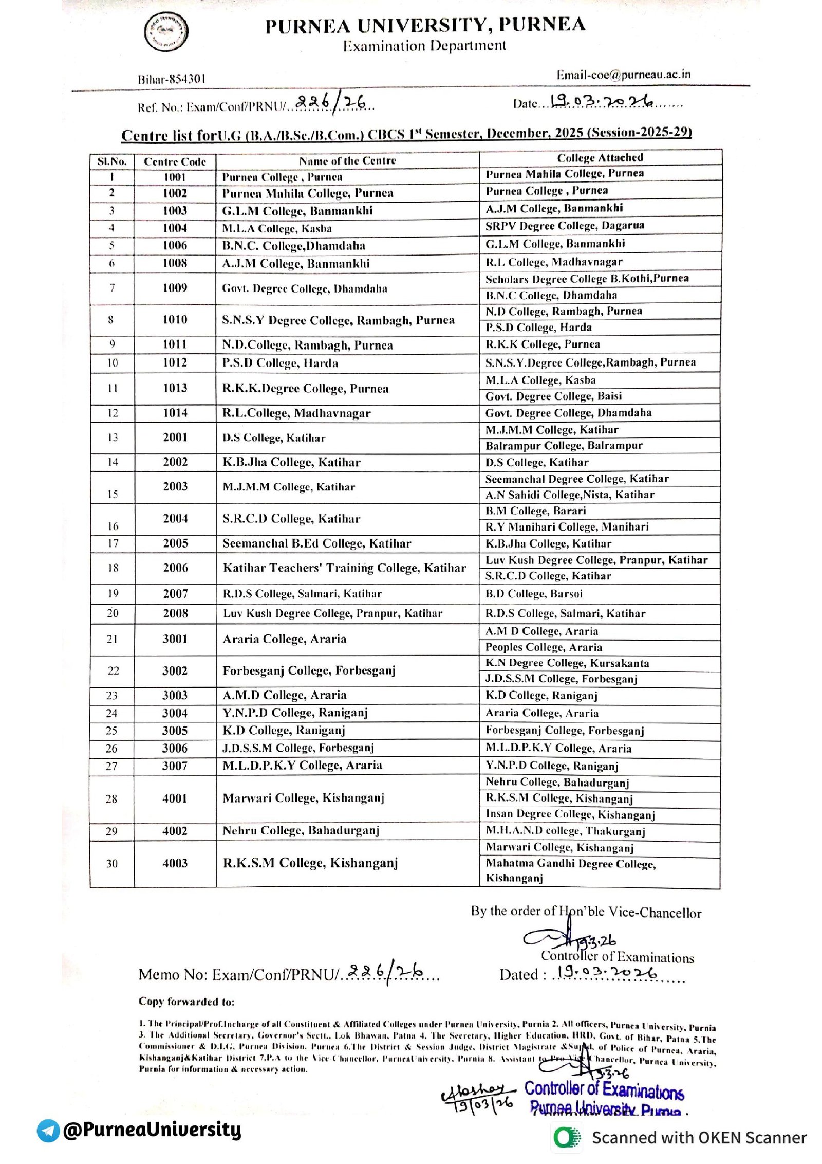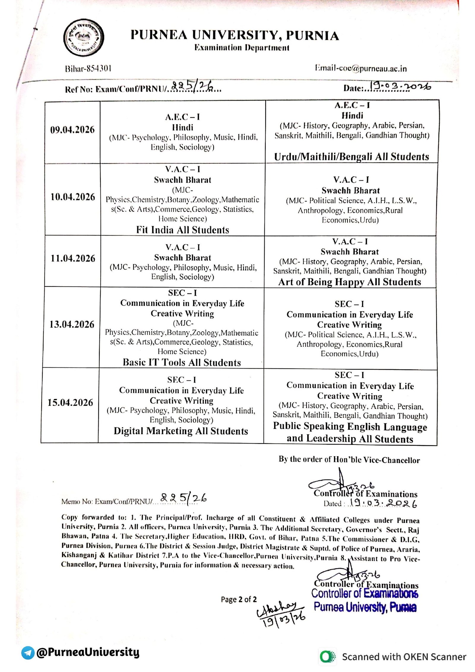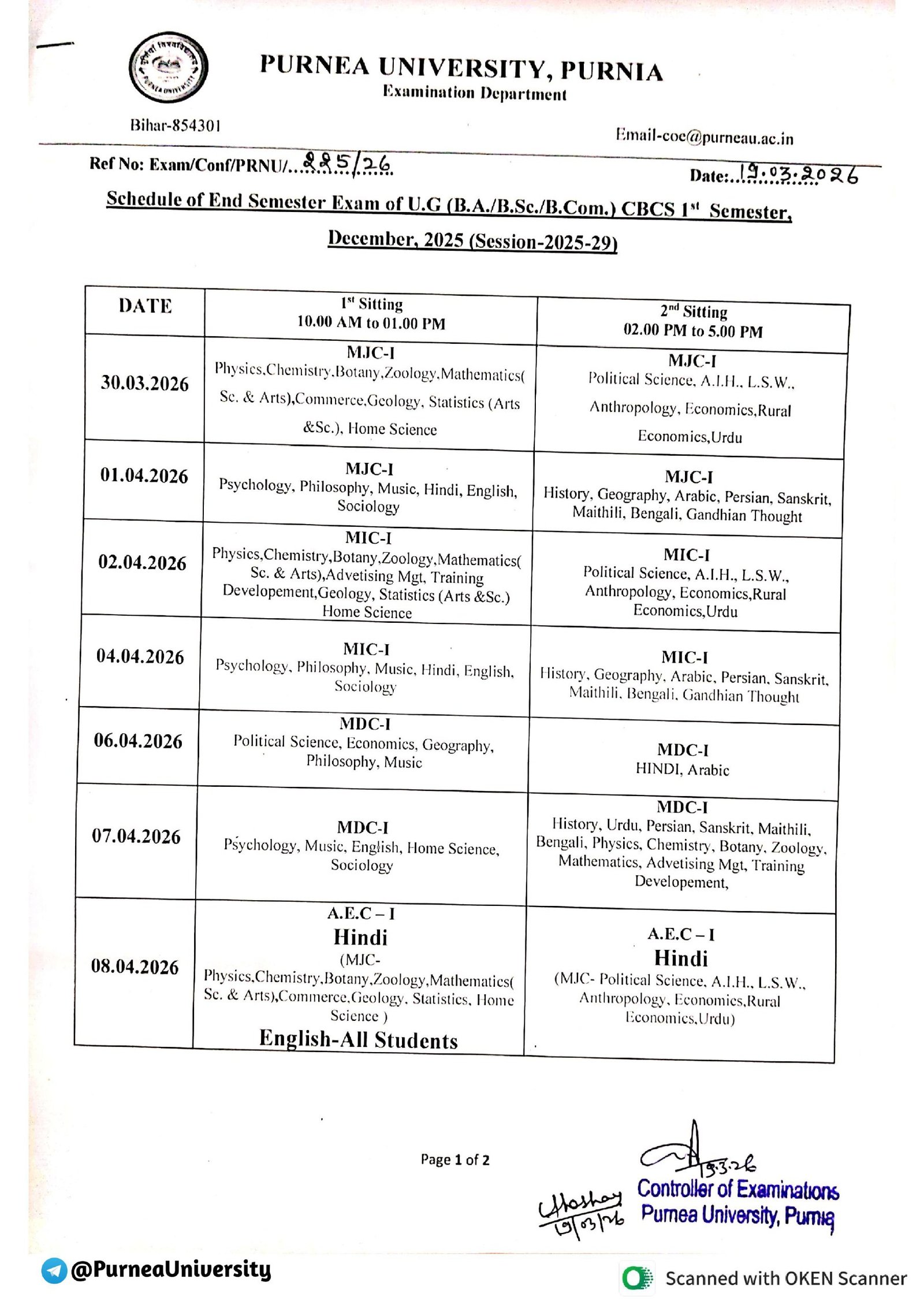 🎓 Purnea University UG 1st Sem Exam Programme 2026 जारी – पूरा शेड्यूल, तिथि, विषय और महत्वपूर्ण जानकारी