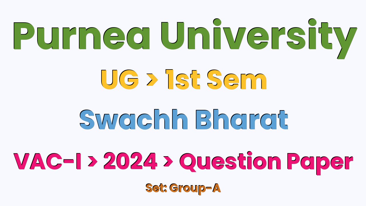 Purnea University UG 1st Sem Swachh Bharat VAC-I Group-A 2024 Question Paper