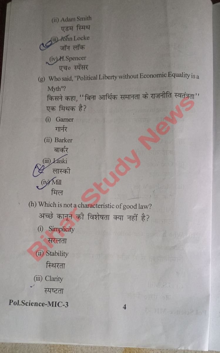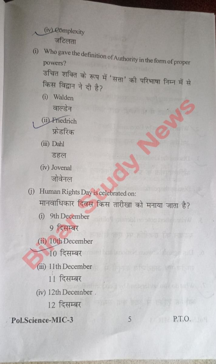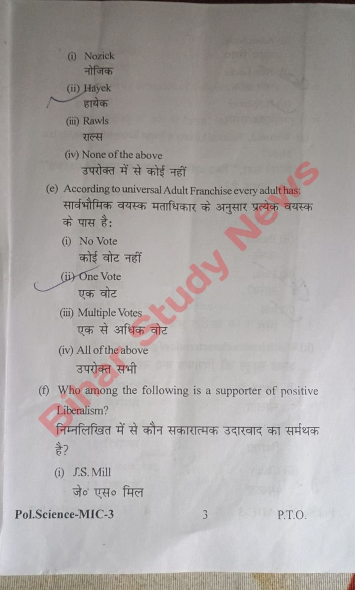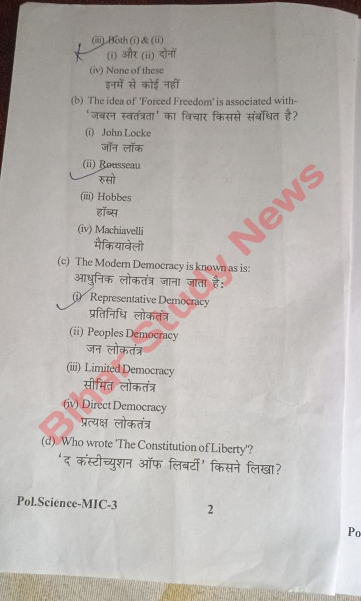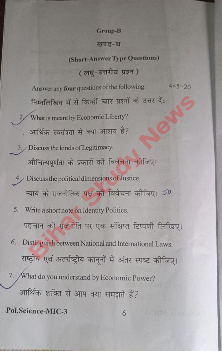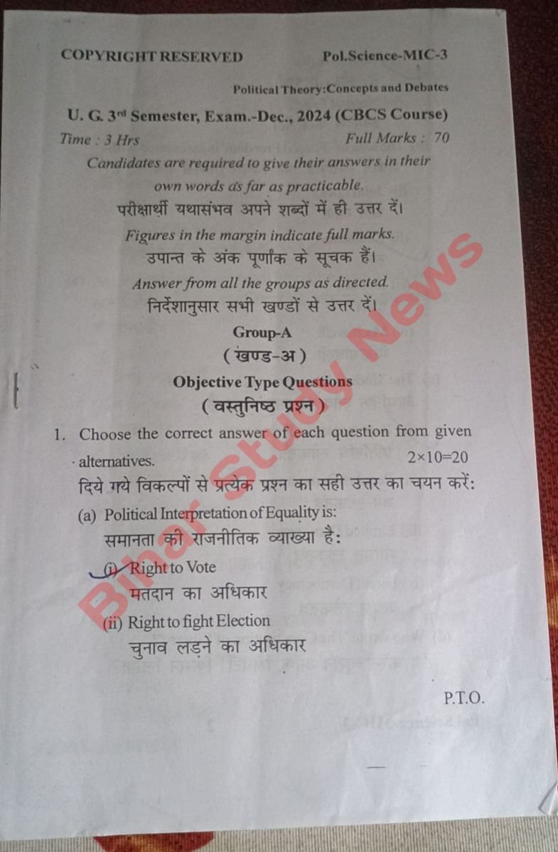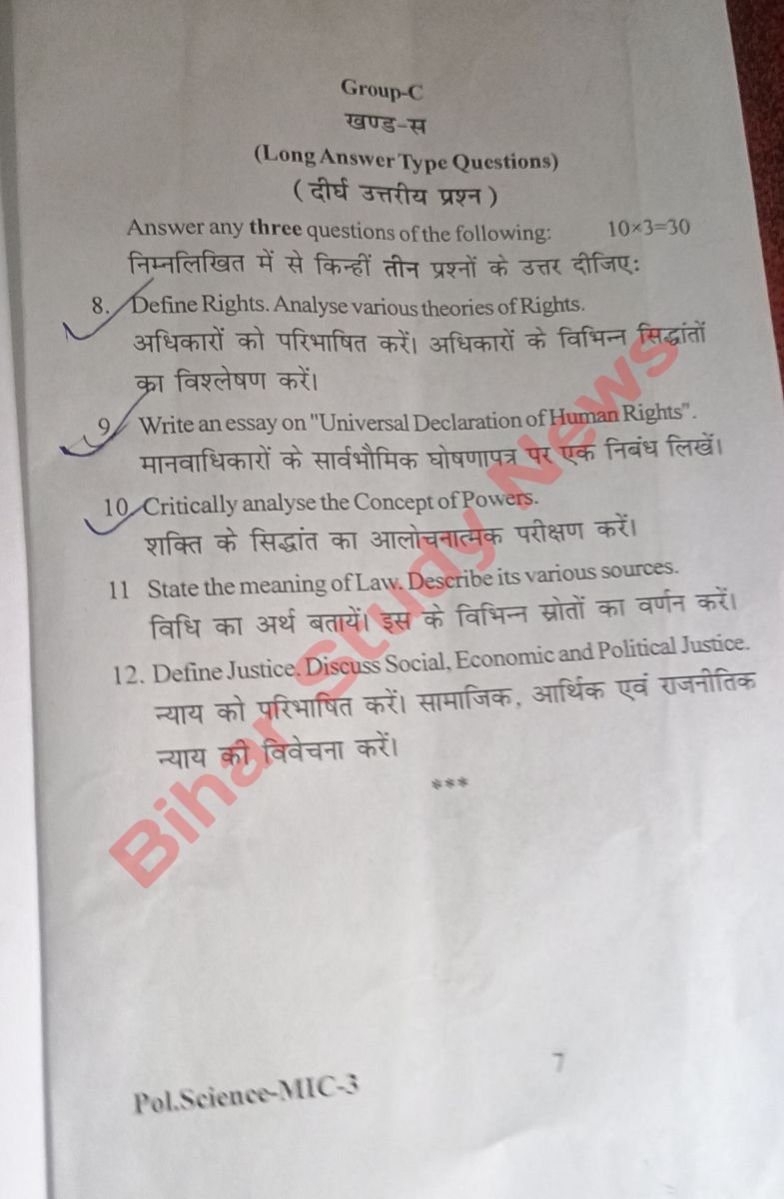 BNMU Madhepura BA 3rd Sem Political Science MIC-III 2024 Question Paper