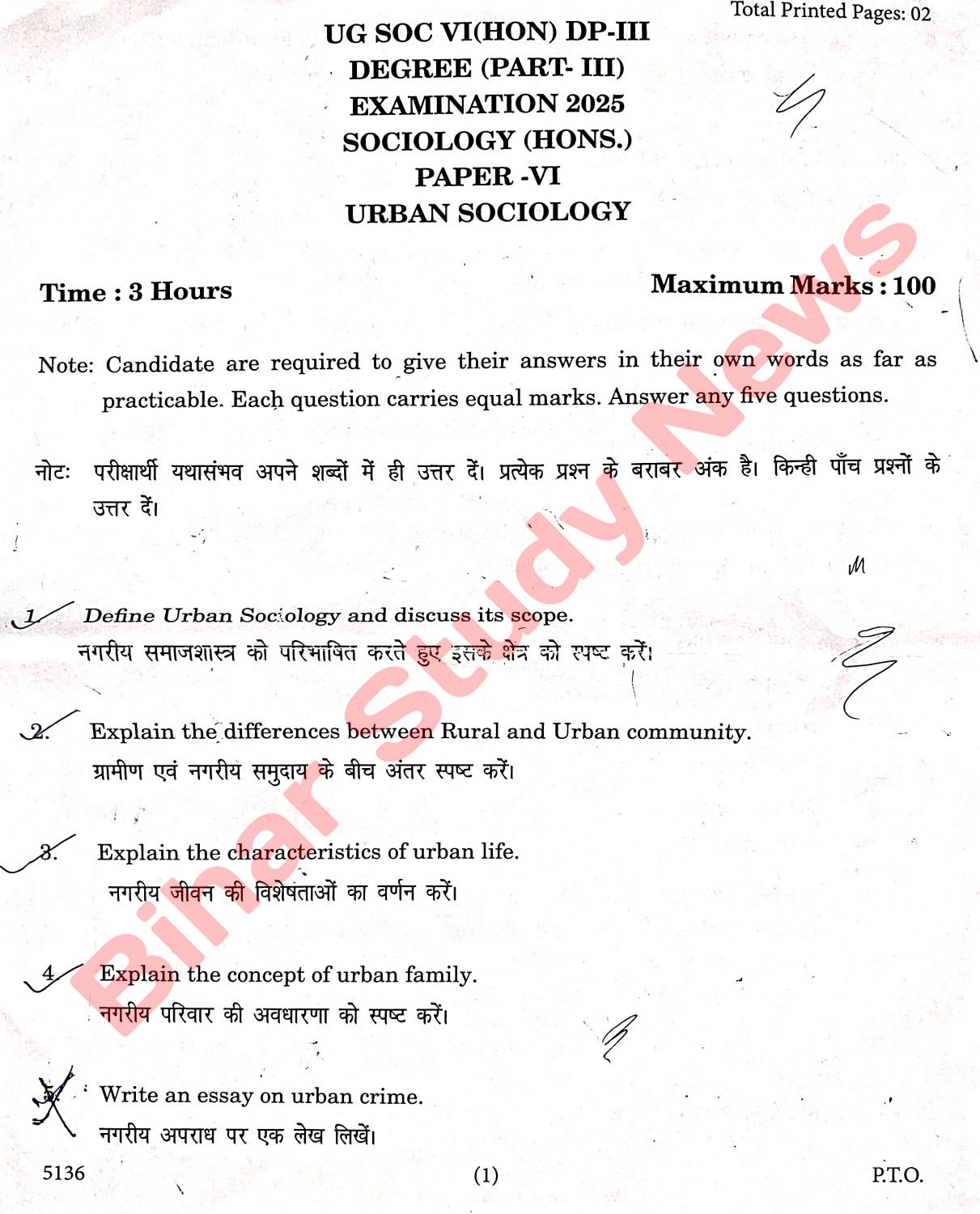 Purnea University BA Part 3 Sociology Hons Paper VI 2025 Question Paper
