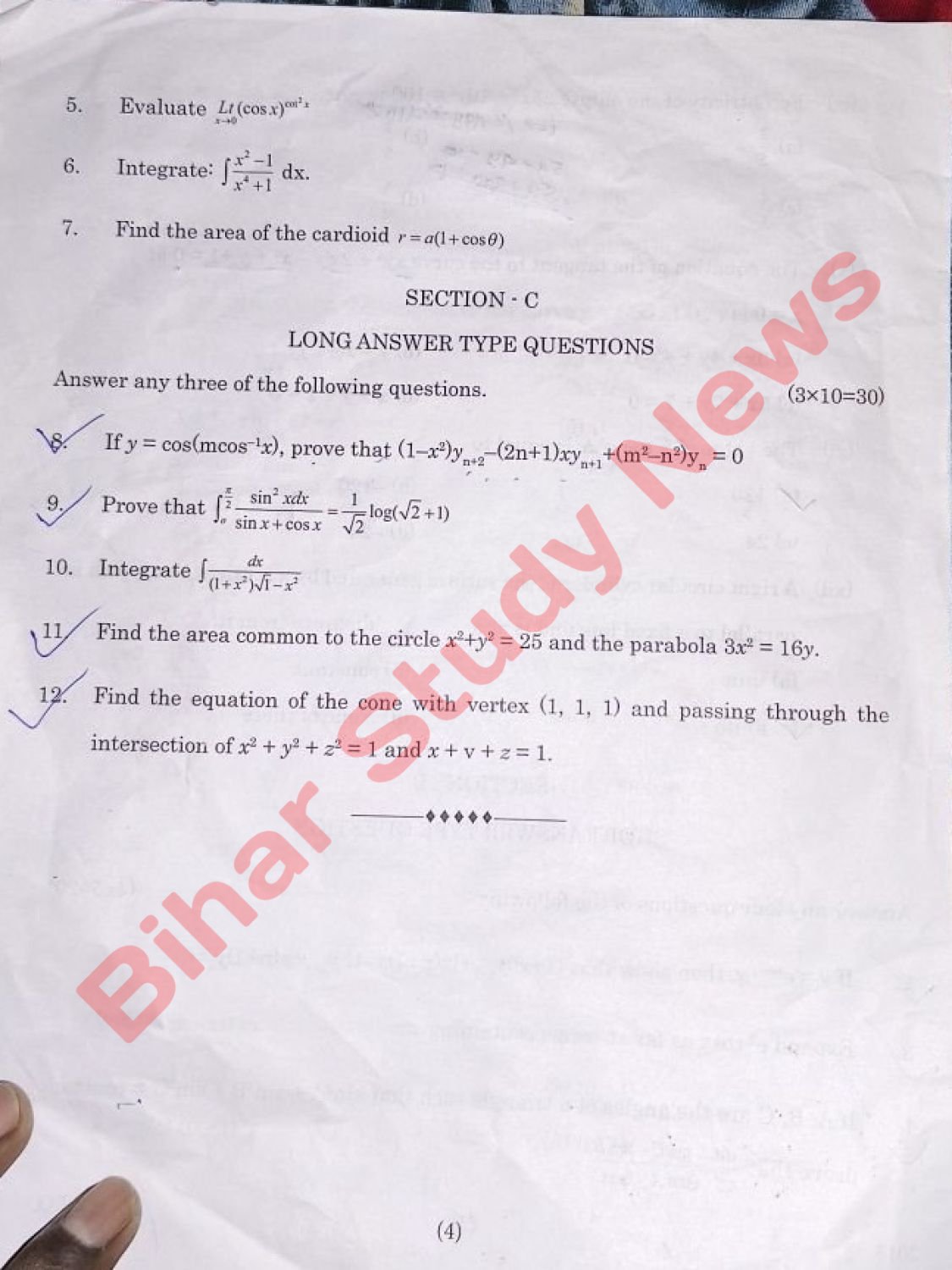 Purnea University BSc 2nd Sem Mathematics MIC-II 2025 Question Paper