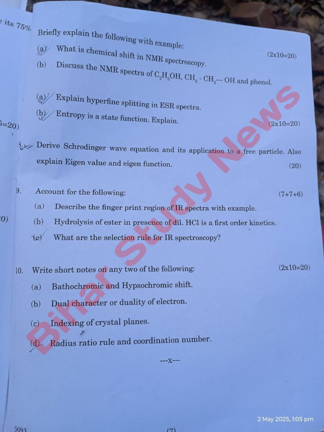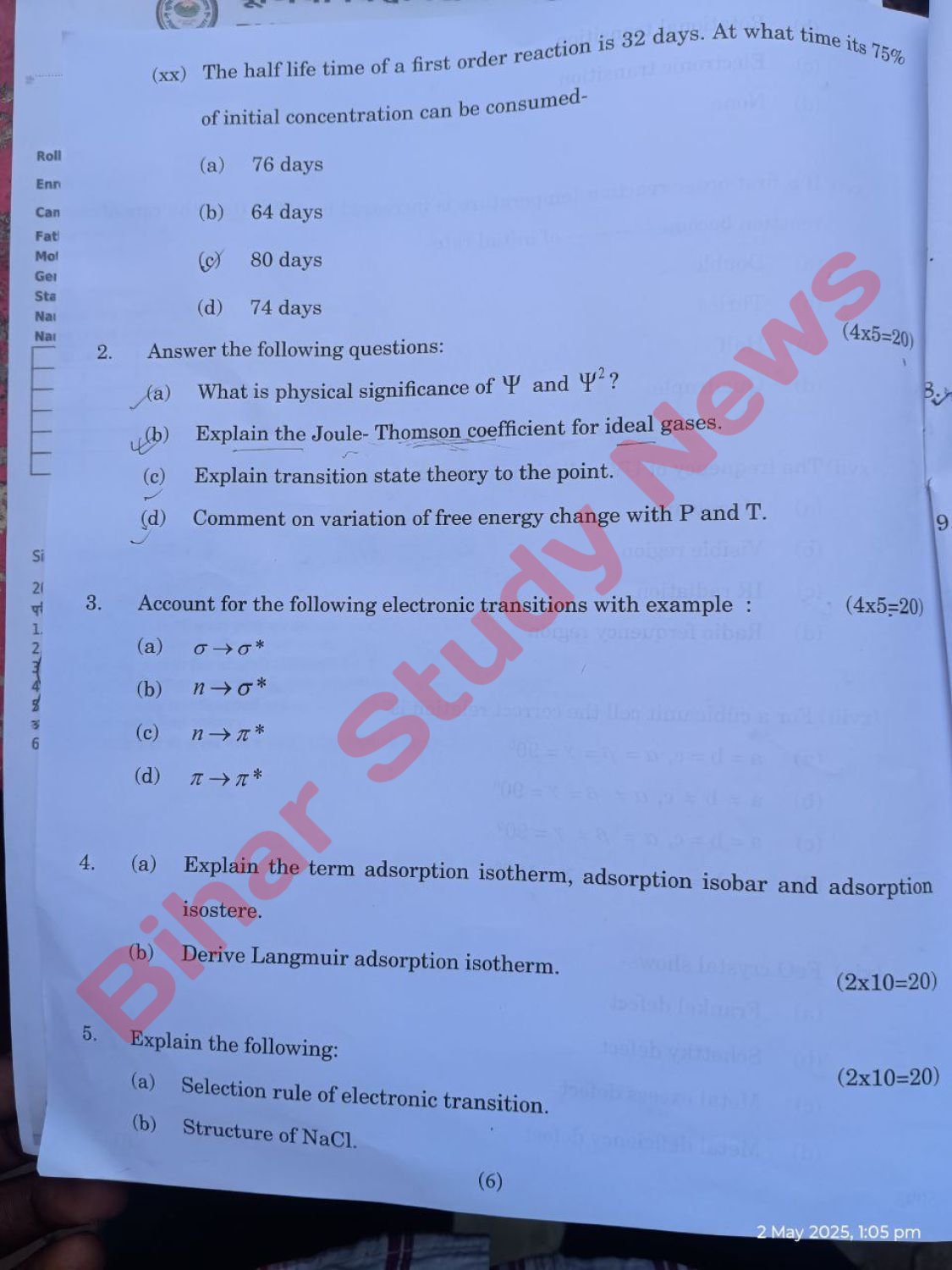 Purnea University BSc Part 3 Chemistry Hons Paper V 2025 Question Paper