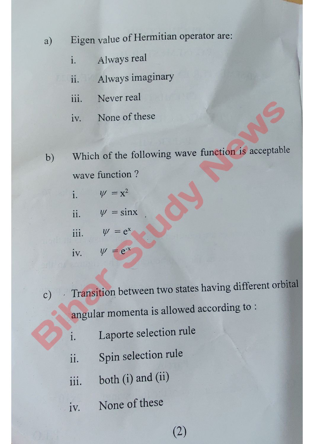 | Paper Name | Physical Chemistry-II |
